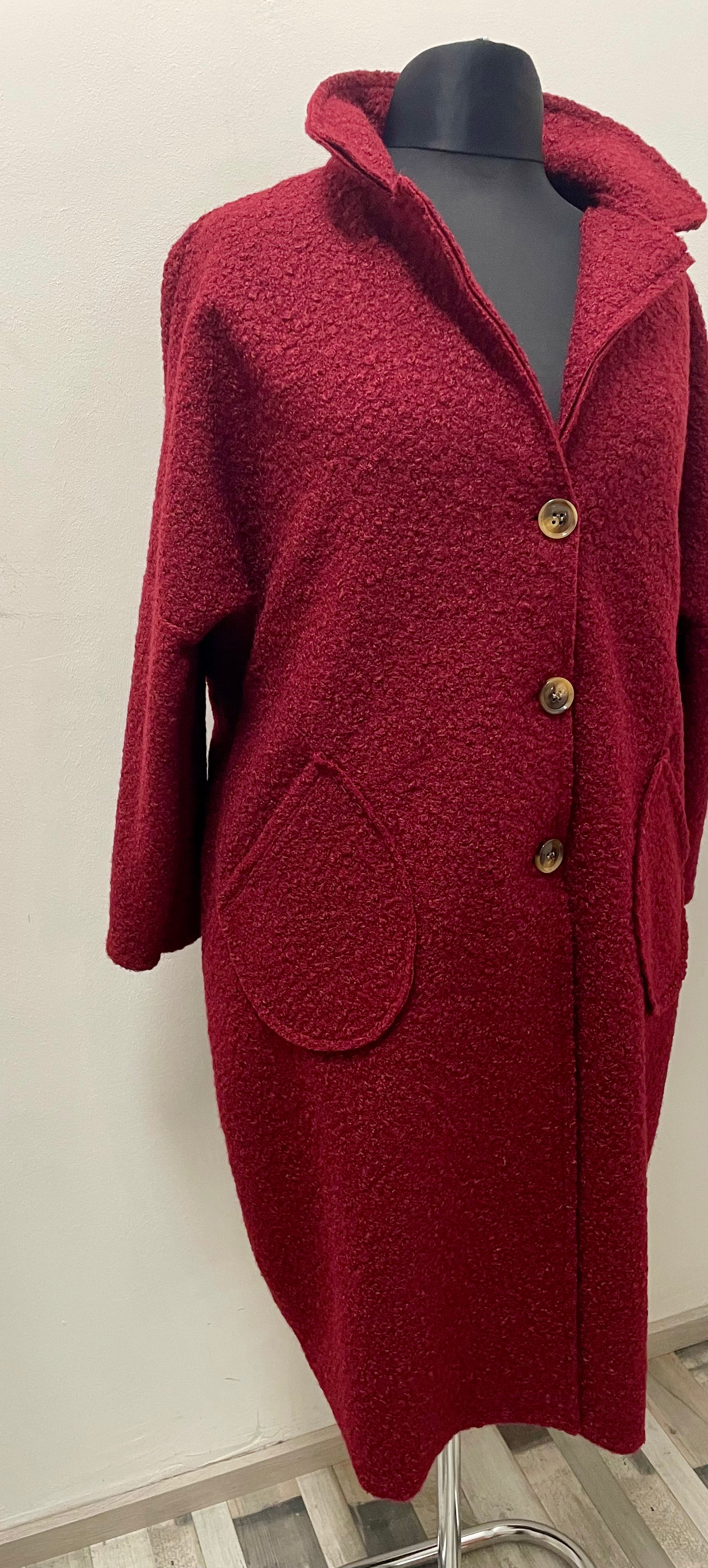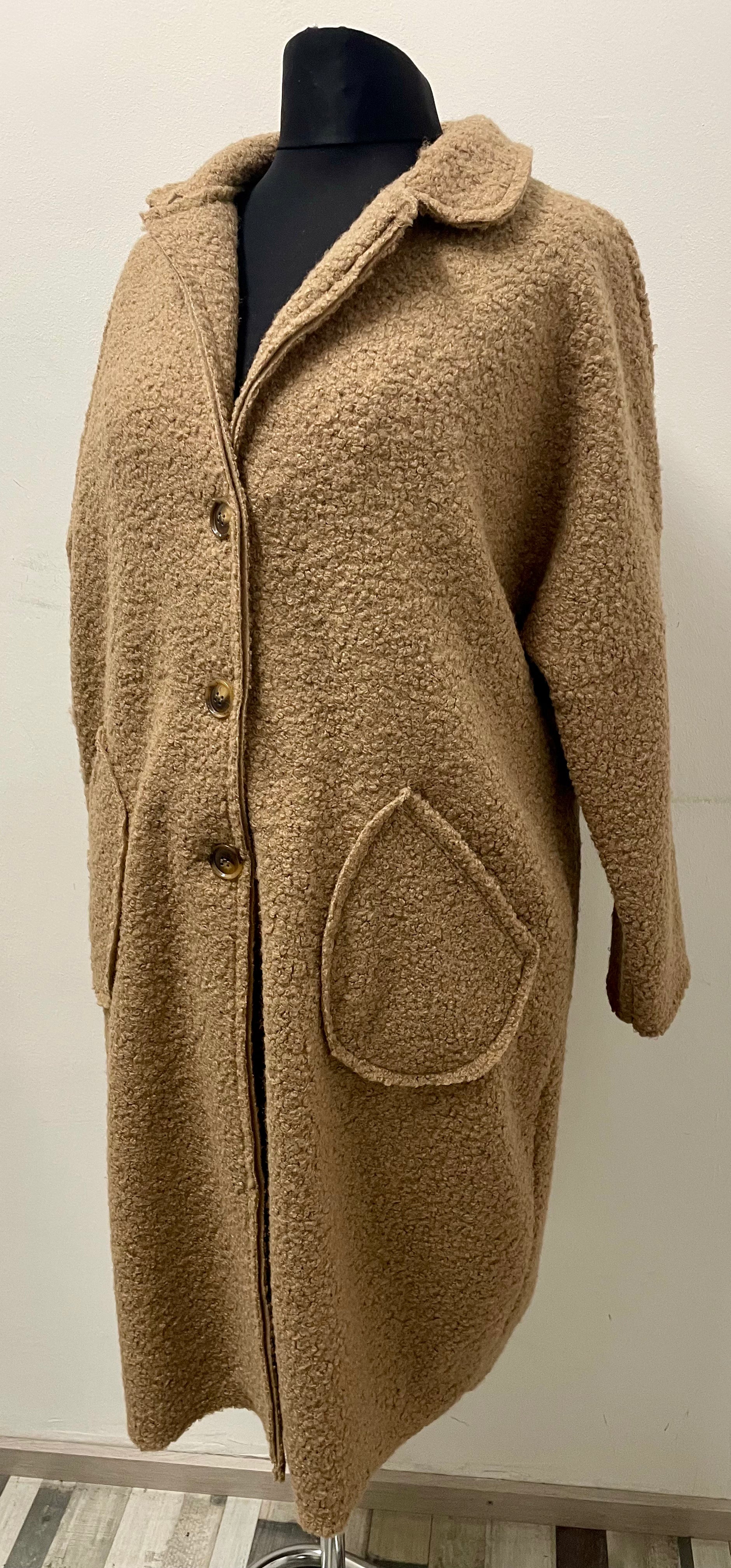 - Bouclé Mantel, weich und flauschig mit 2 aufgesetzten Taschen und Knöpfen