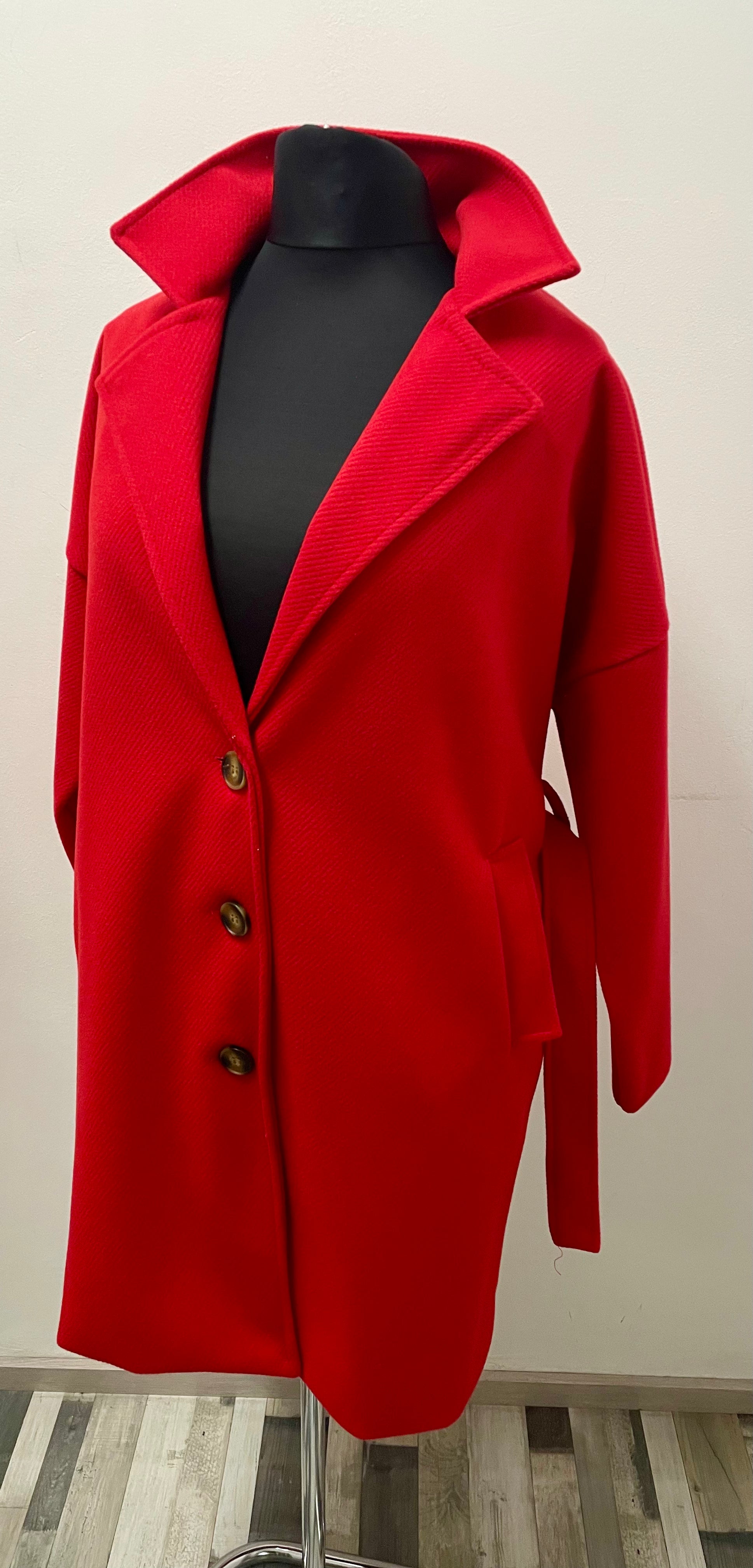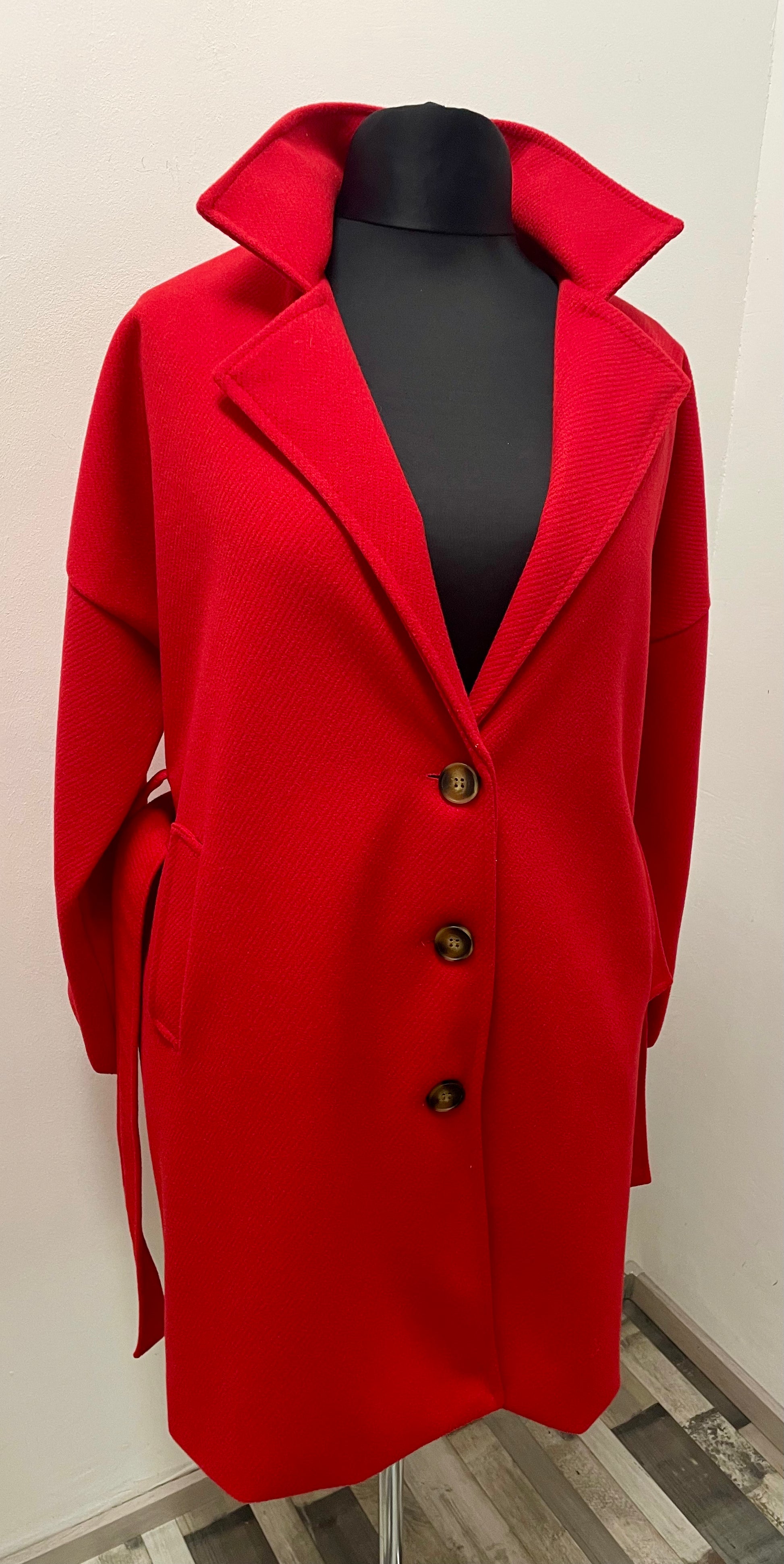- Halblanger Mantel, gefüttert mit 2 Einschubtaschen, Knopfverschluss und Gürtel