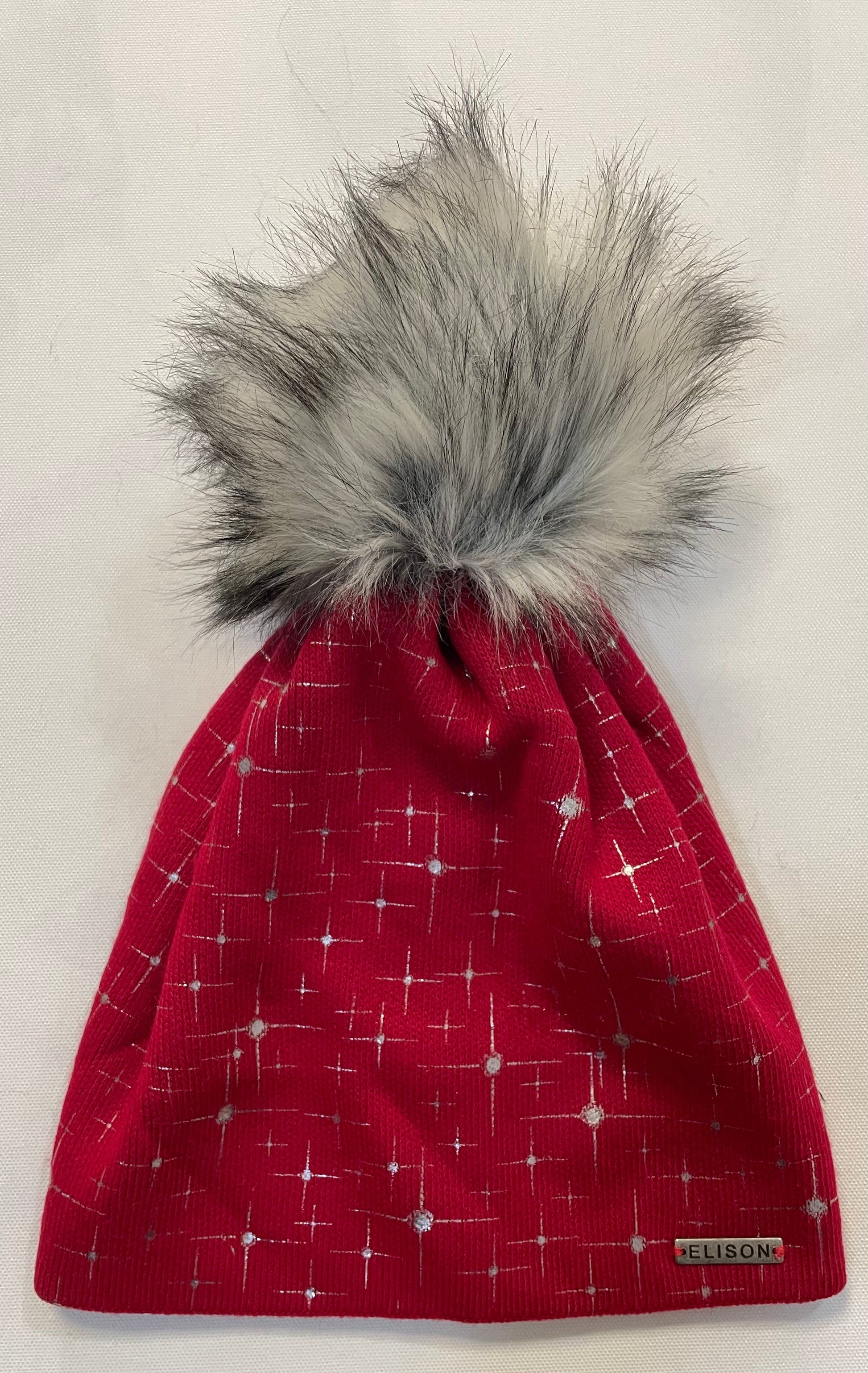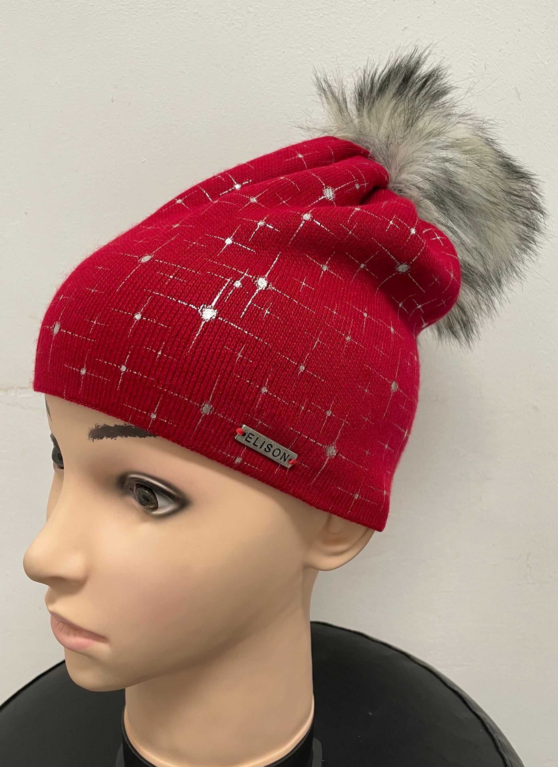 - Mütze mit Bommel und silberfarbenen Applikationen