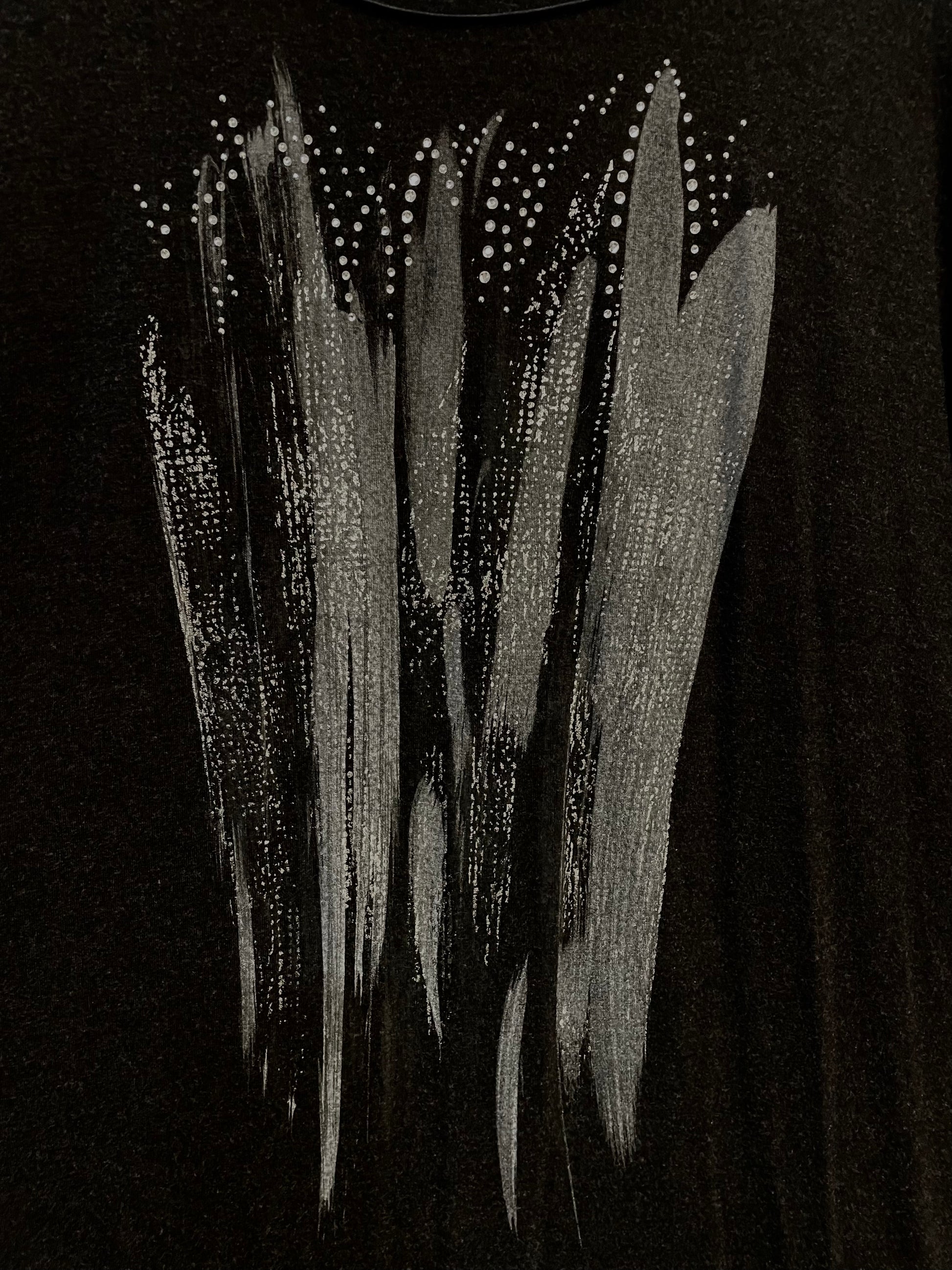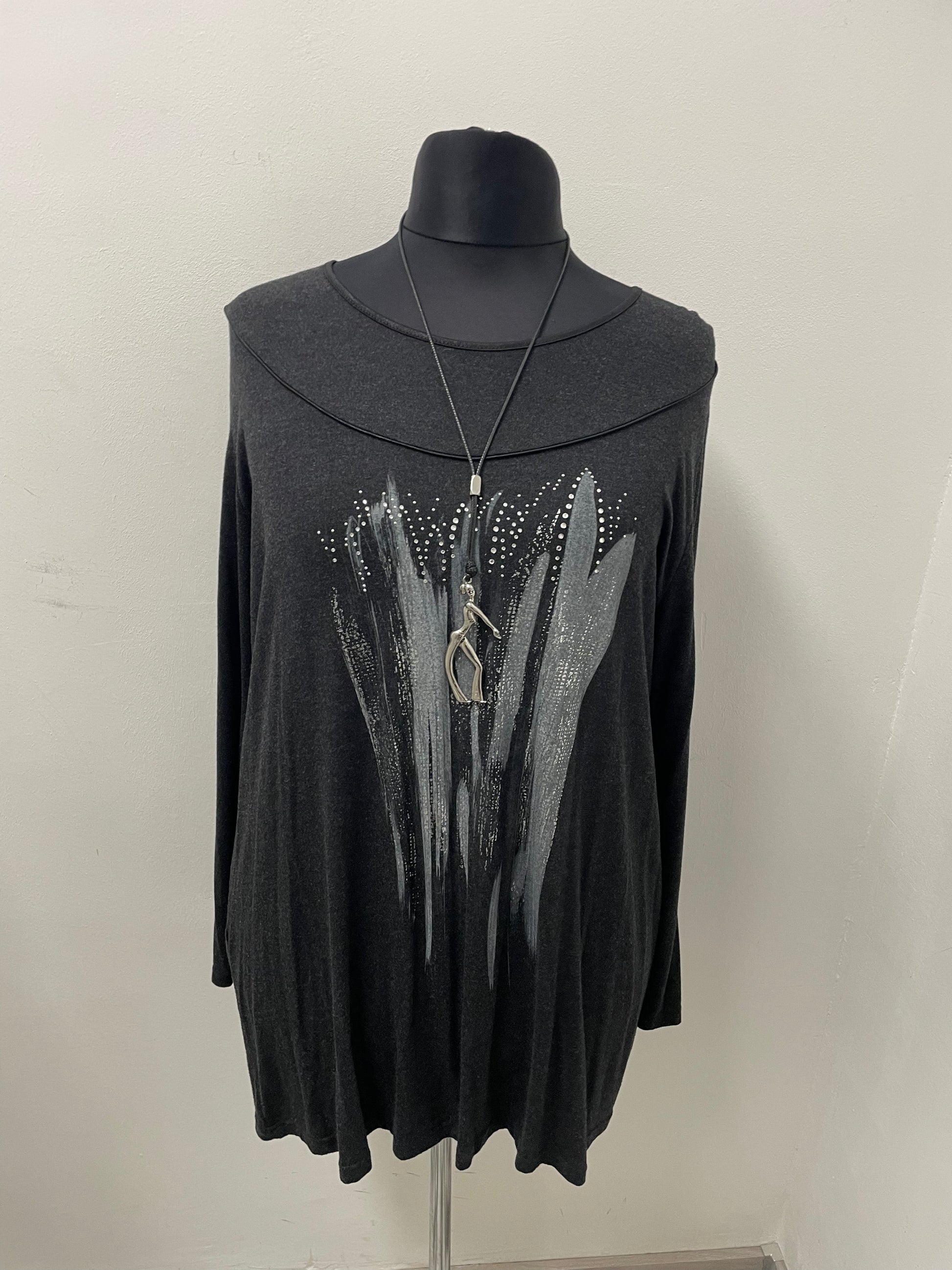 - Oversize Tunika mit Glitzersteinchen und silberfarbenen Print, gerader Schnitt