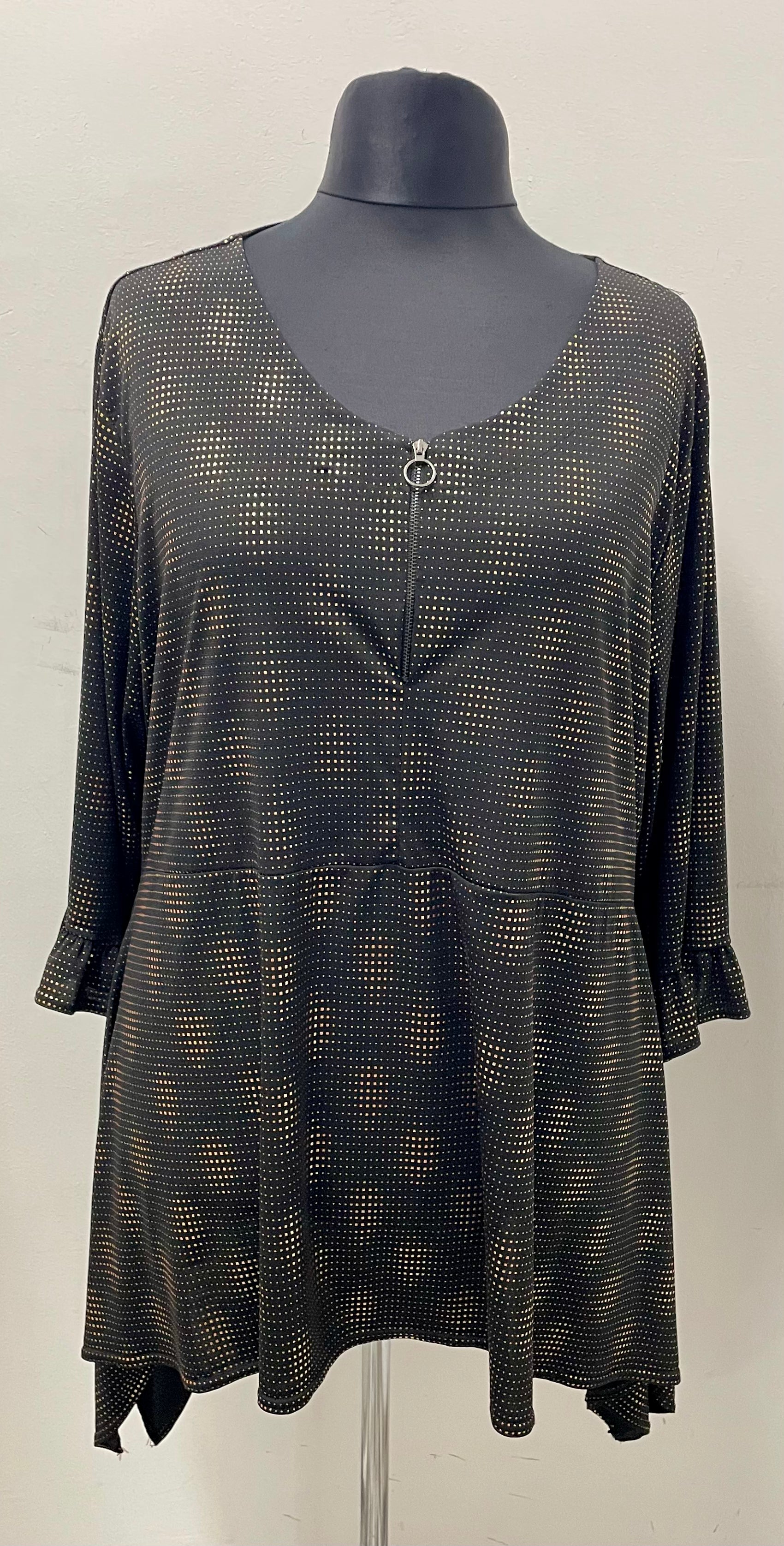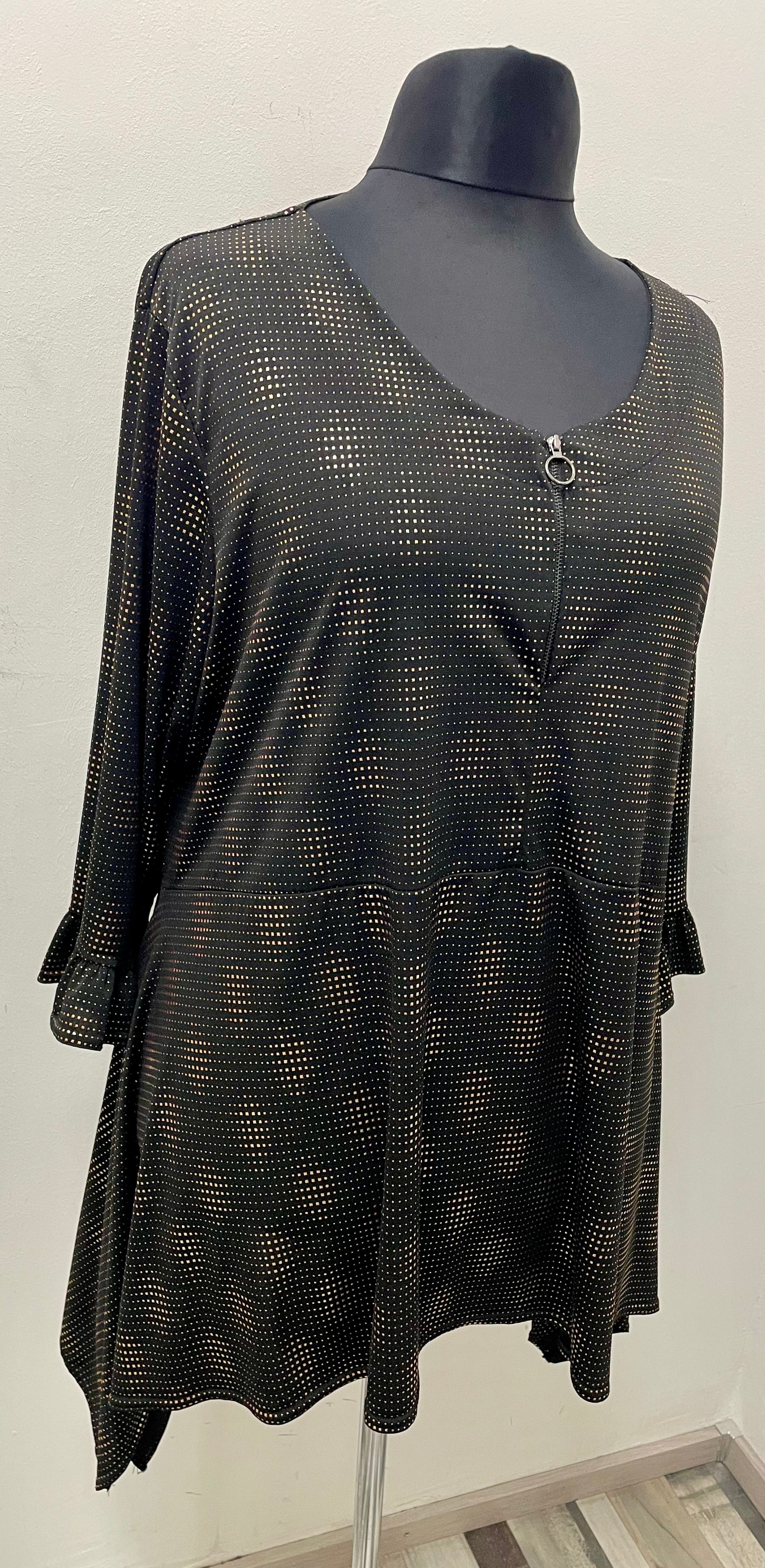 - Oversize Tunika in A-Form Schnitt, Schwarz/Gold